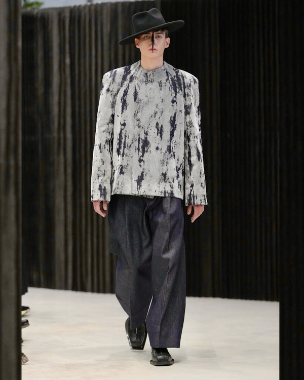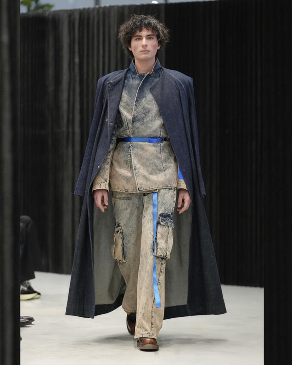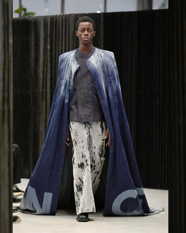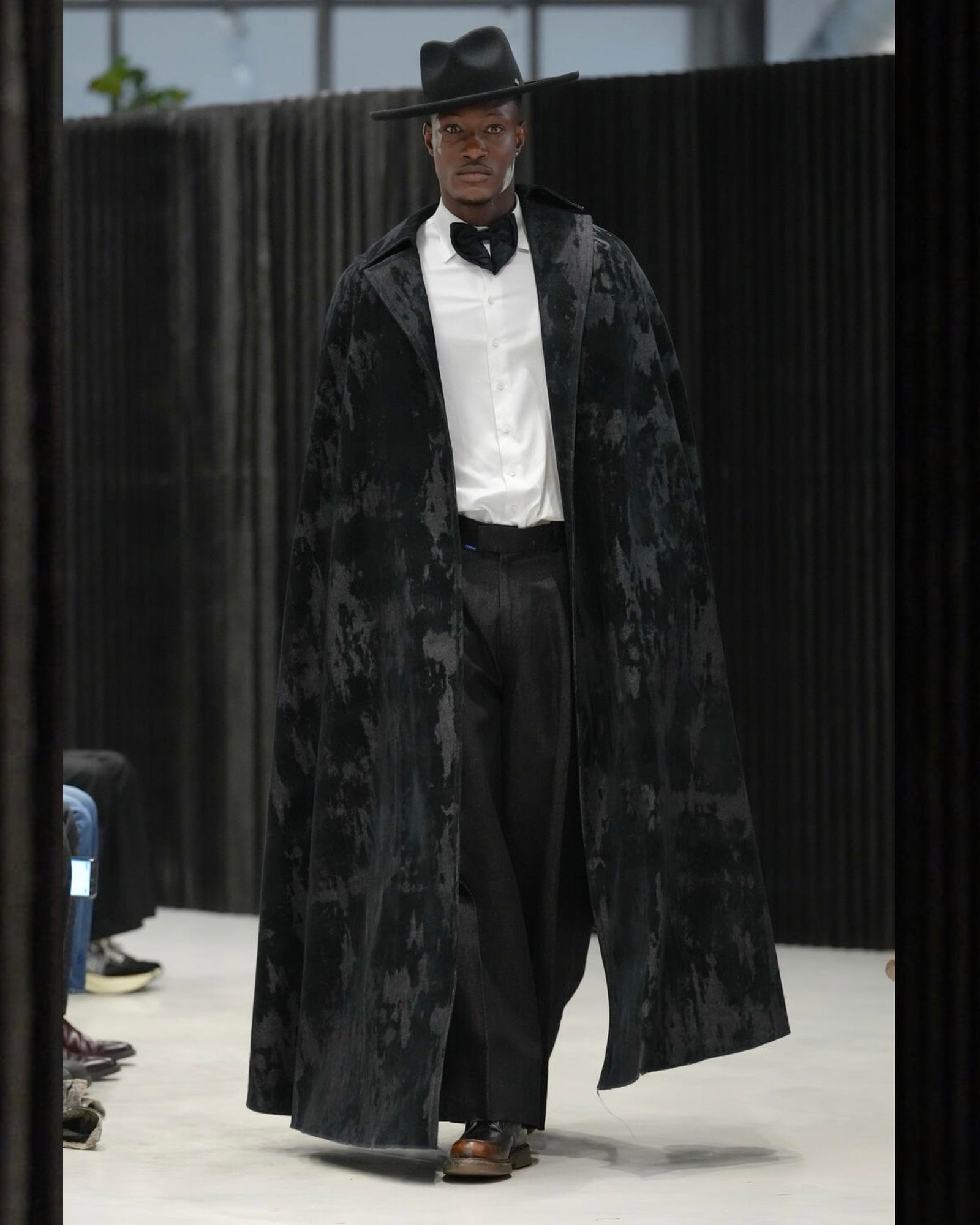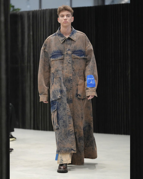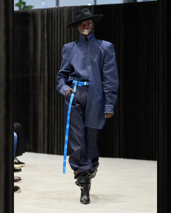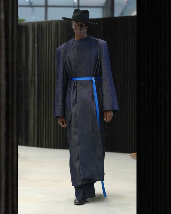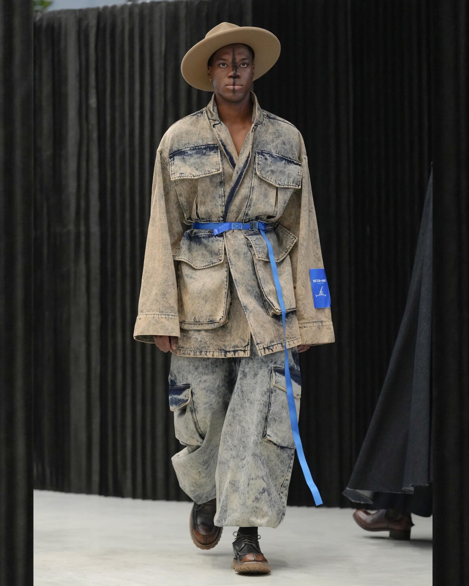 Anatomy of Void explores emptiness as a generative force an origin capable of shaping form, function, and identity. The collection unfolds through a process of reduction and subtraction, stripping aesthetics of the superfluous to reveal structure, purpose, and essence. Central to the project is a radical reinterpretation of denim, transformed from an everyday material into an architectural element through layering,abrasion, and industrial dyeing techniques that confer depth, solidity, and expressive strength. Positioned at the intersection of labour and luxury, the collection draws inspiration from Ghanaian construction workwear and European tailoring traditions. The uniform is reimagined as a second skin fluid, functional, and refined where utility becomes elegance through design intent. Earth, mud, dust, and wear inform both texture and palette, resulting in tones of worn indigo, clay, and deep neutrals that reflect time, movement, and material honesty. Workwear archetypes such as overalls, jumpsuits, utility jackets, and protective layers are elevated through soft tailoring and relaxed structures. Seams are deliberate, volumes sculpted to move with the body, and silhouettes remain precise yet fluid, Oversized double-face trousers emerge as a key element of the collection, combining robustness with architectural proportion and contemporary elegance. Functional details pockets, reinforcements, fastenings evolve into a true design language, expressing continuity between concept and craft. The collection was developed in collaboration with Haseller, technical and production partner, and supported by NIXES Business Advisors and Afro Fashion Association. The show took place at Green Media Lab, a venue aligned with the project’s values of research, sustainability, and experimentation. The experience was further enhanced by an original soundtrack composed by Philip Abussi for Mokamusic, reinforcing the dialogue between presence and absence that defines Anatomy of Void. Casting featured Major Milano Models and CMA Models, while accessories and footwear were developed in collaboration with Shoto Shoes, Aphery Shoe Maker, and The Buckshat.Among the guests in attendance were Carlo Capasa, President of Camera Nazionaledella Moda Italiana, Sara Maino, Creative Director of Fondazione Sozzani and International Talent and Brands Ambassador for Camera Nazionale della Moda Italiana, and Francesca Ragazzi, Editor-in-Chief of Vogue Italia, underscoring the relevance of Victor-Hart™’s debut within the international fashion system. Public relations and communication for the event were handled by Negri Firman, whose strategic support contributed to the successful positioning of the brand during Milan Fashion Week Men. With Anatomy of Void, Victor-Hart™ asserts an essential and contemporary vision of fashion, where luxury is expressed through material quality, construction, and design intention rather than ornamentation, clearly defining the brand’s identity and opening it's path within the global fashion landscape.